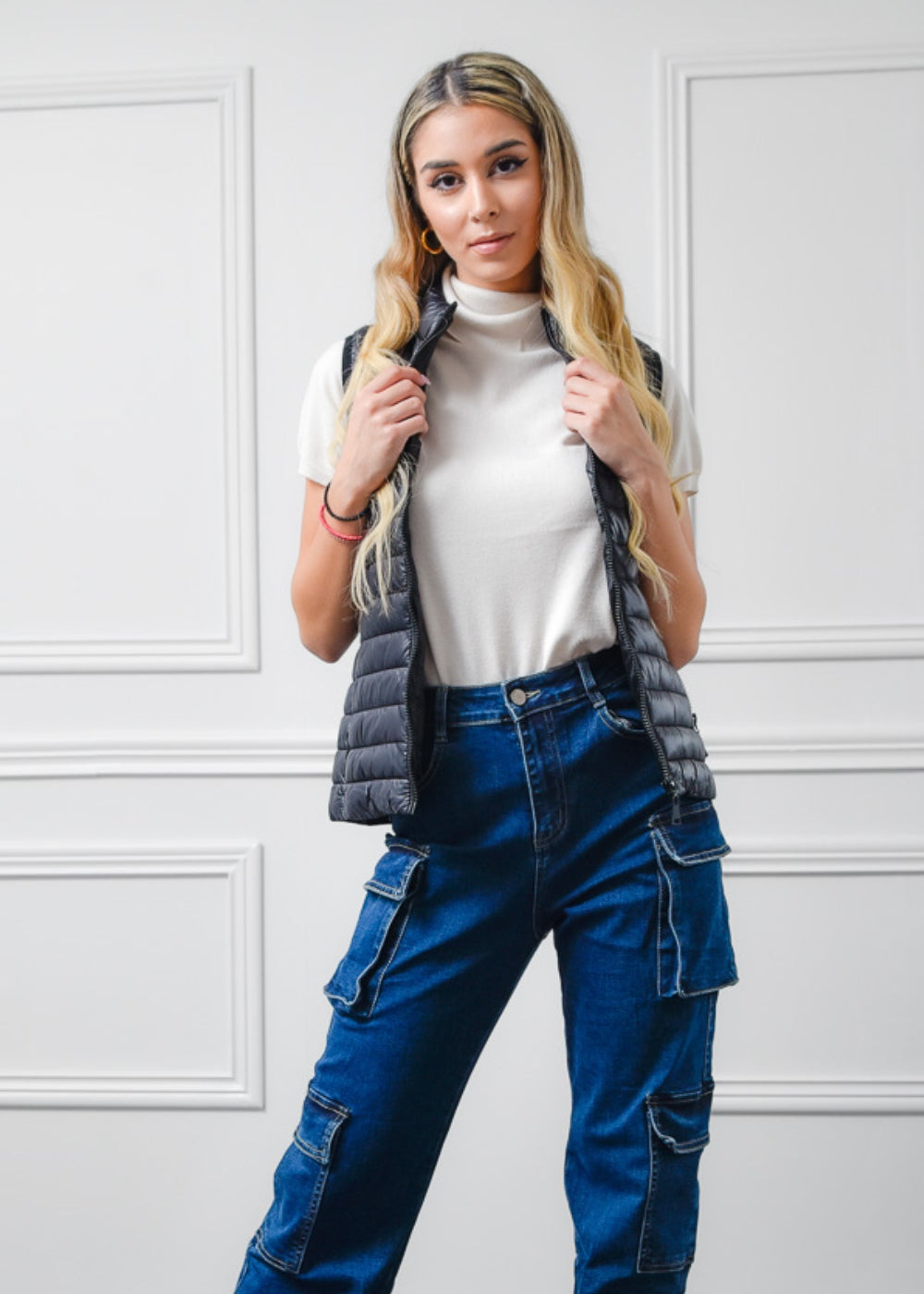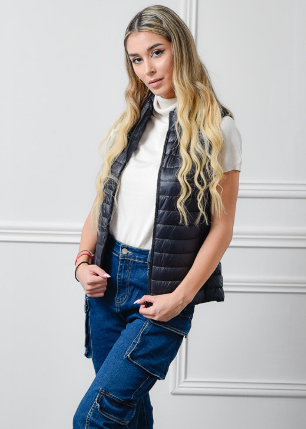 Αμάνικο μπουφάν με τσέπες και φερμουάρ.