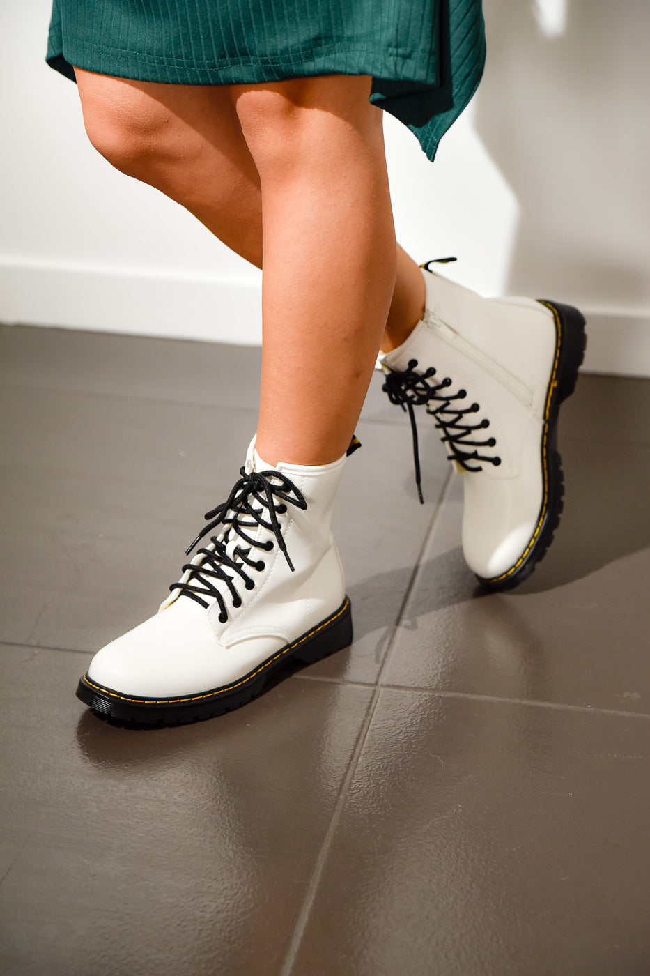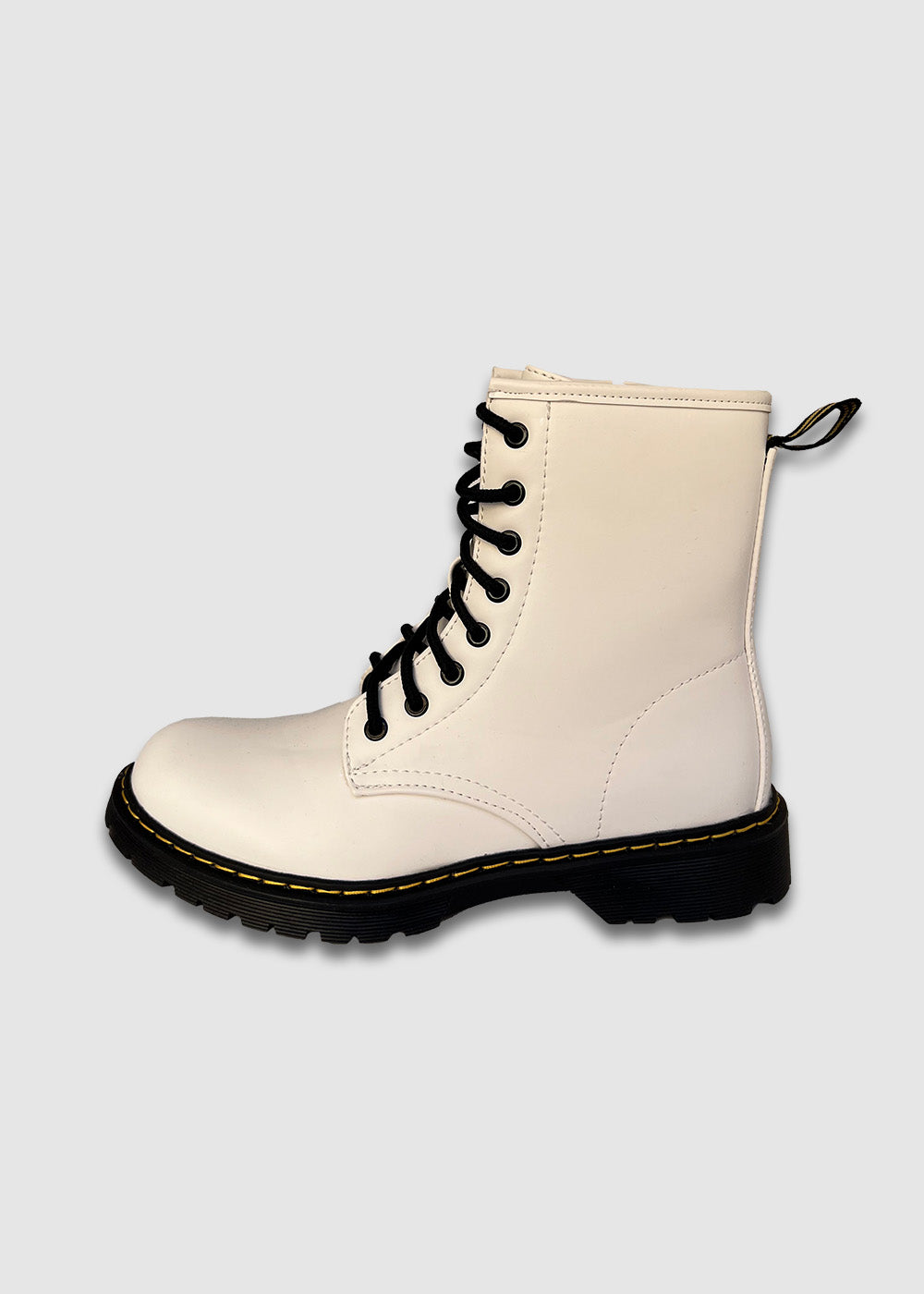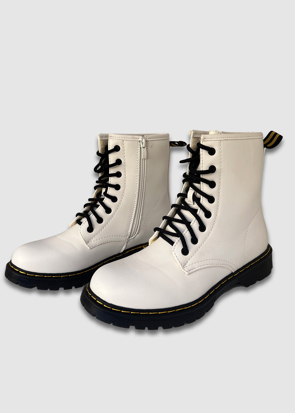 Αρβυλάκια λευκά με φερμουάρ και θηλάκι στο πίσω μέρος.