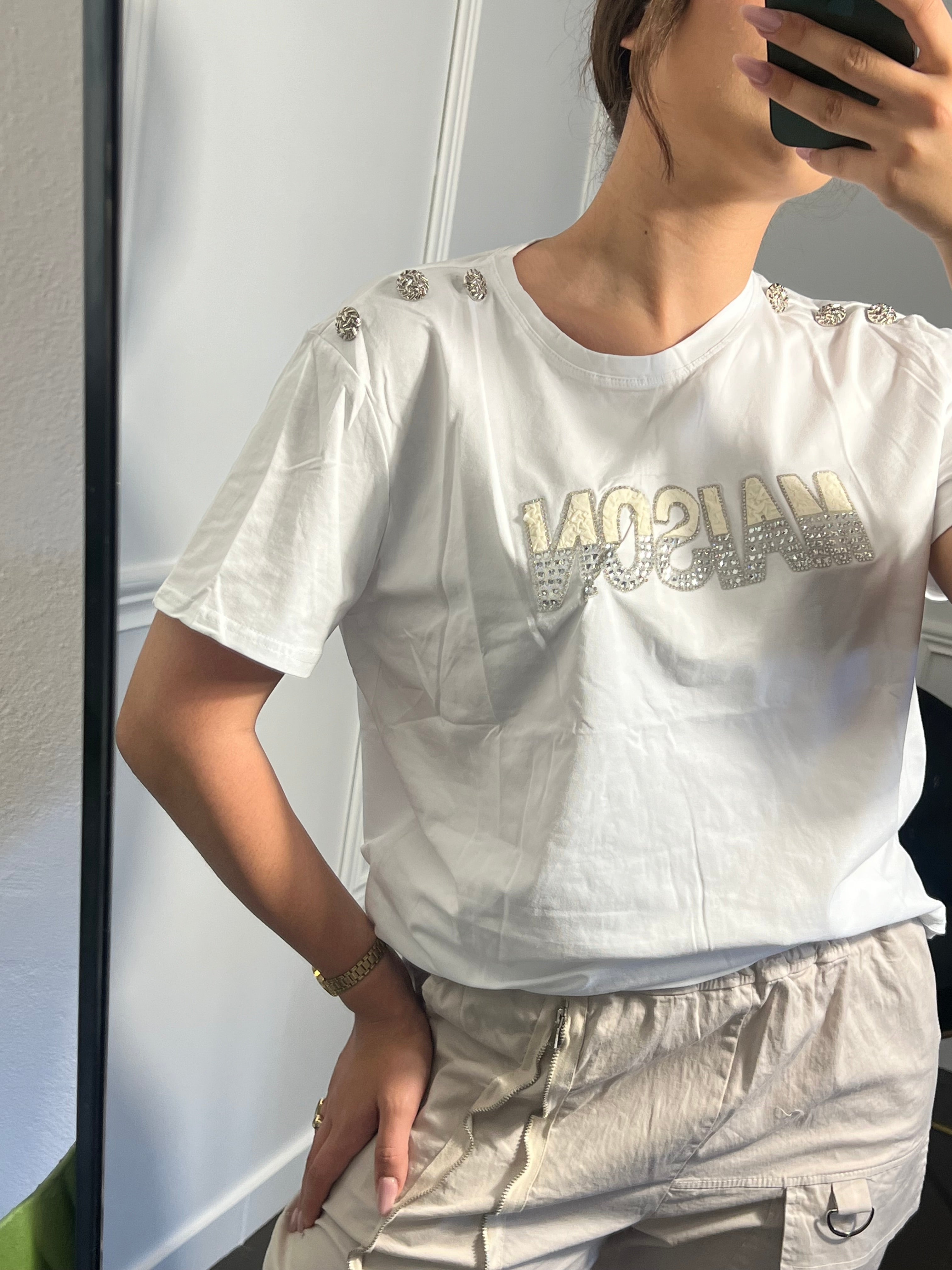 Μπλούζα με στράς σε λευκό χρώμα