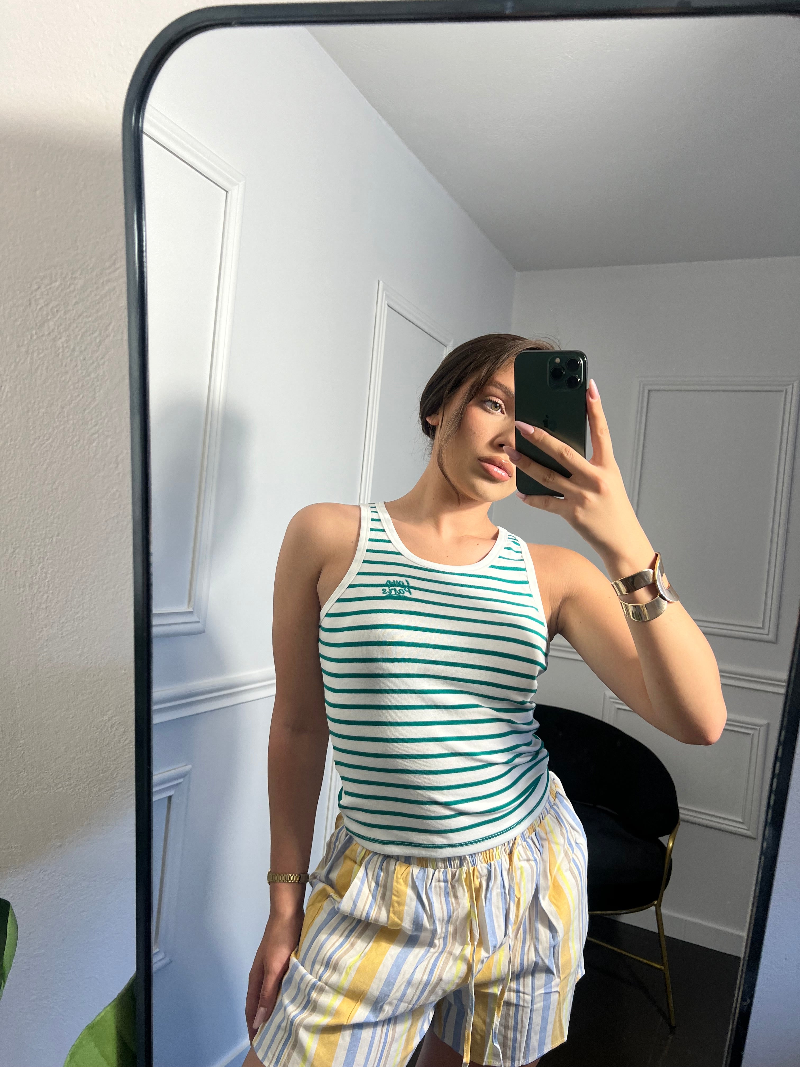 Τοπ ελαστικό με ρίγες σε πράσινο χρώμα
