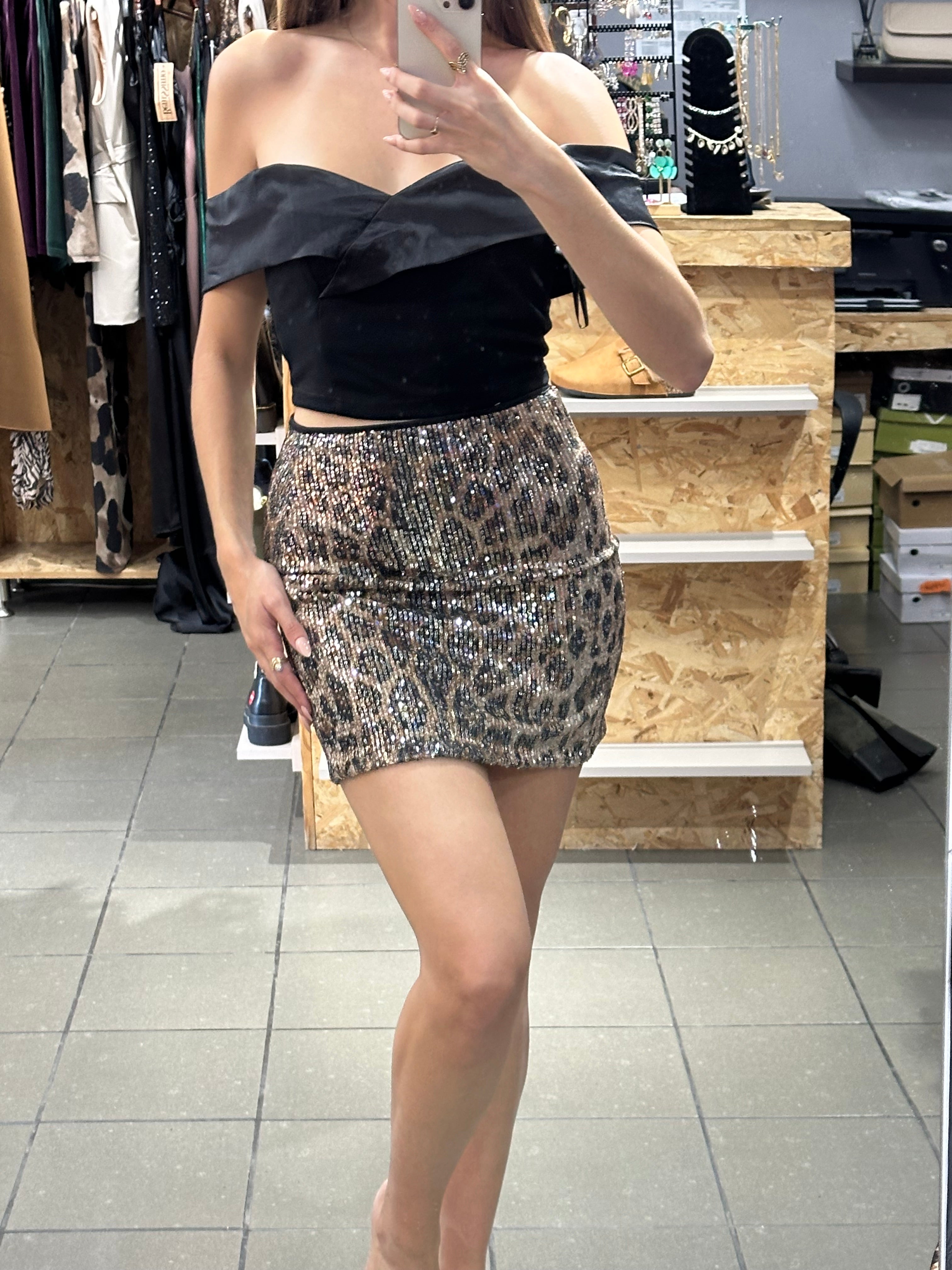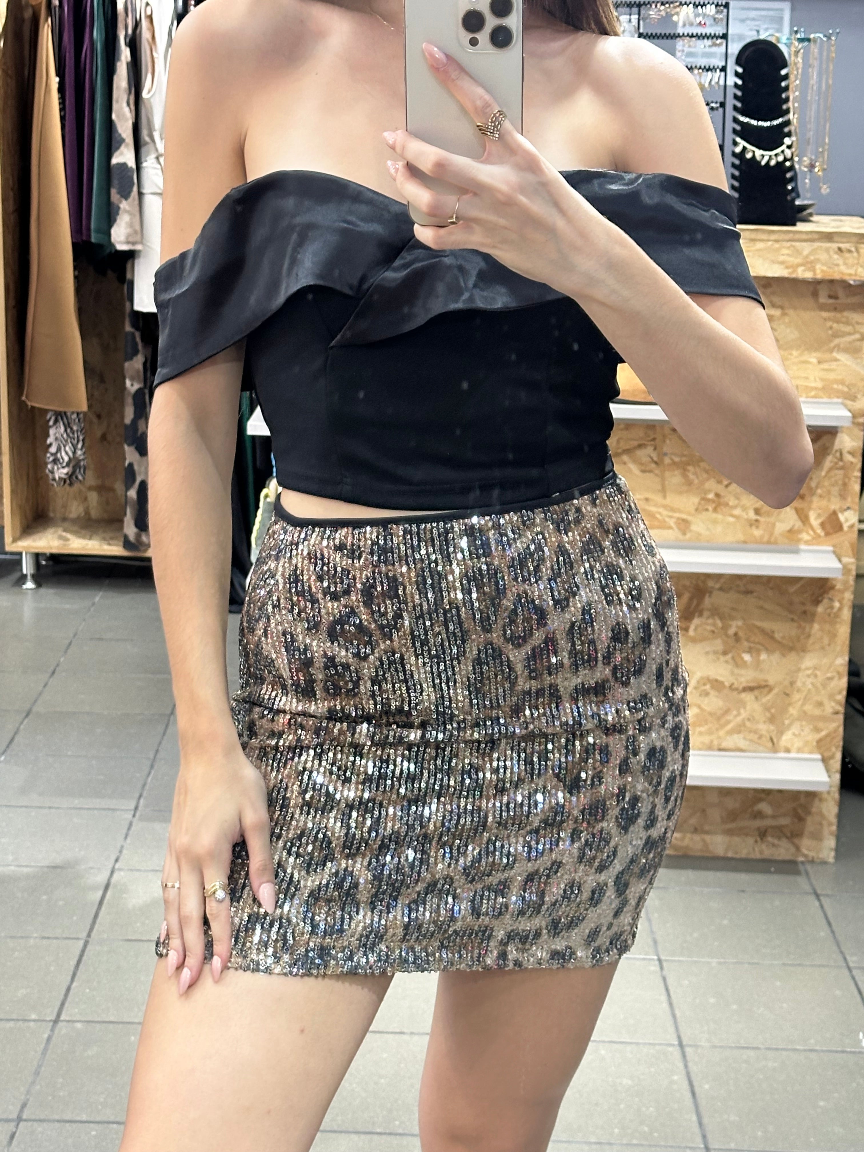 Φούστα ελαστική με παγιέτες λεοπάρ
