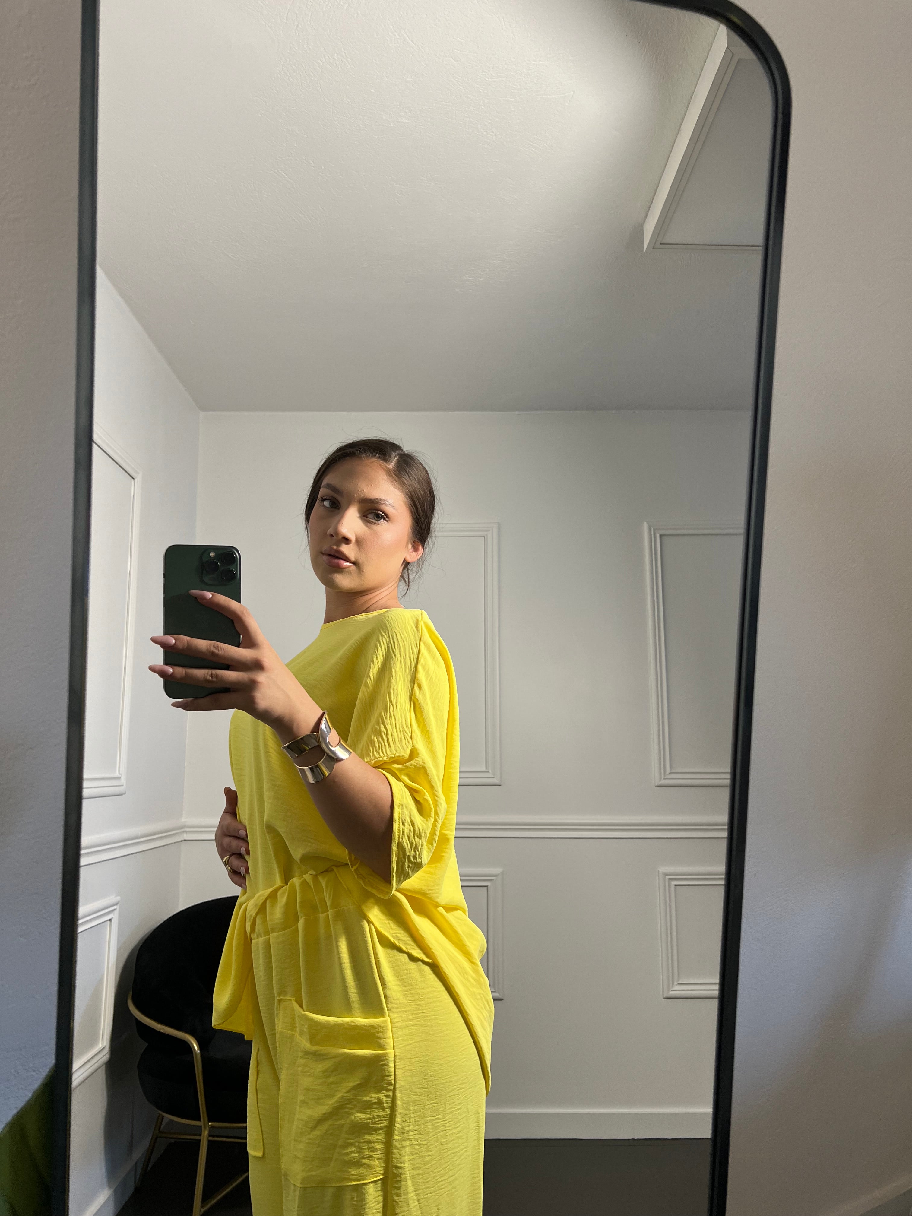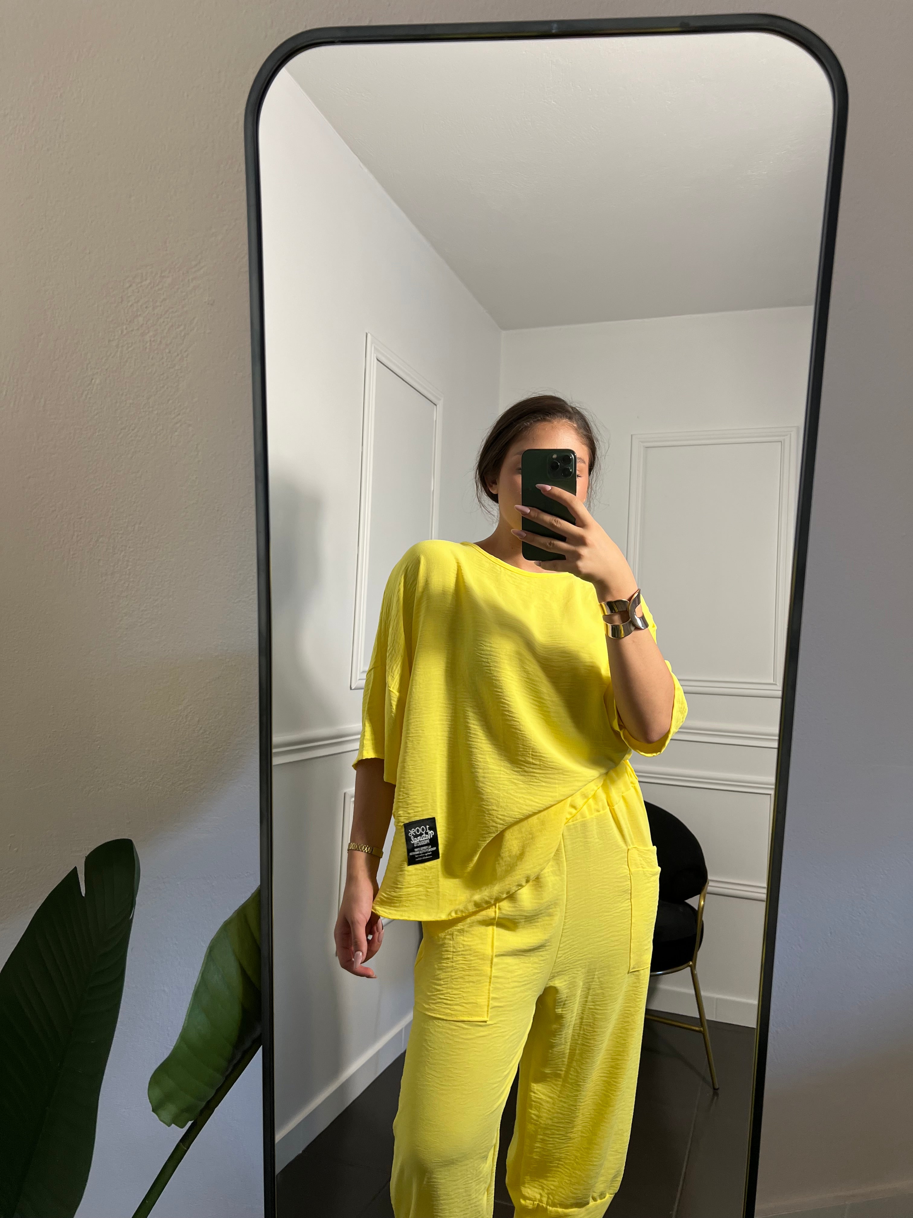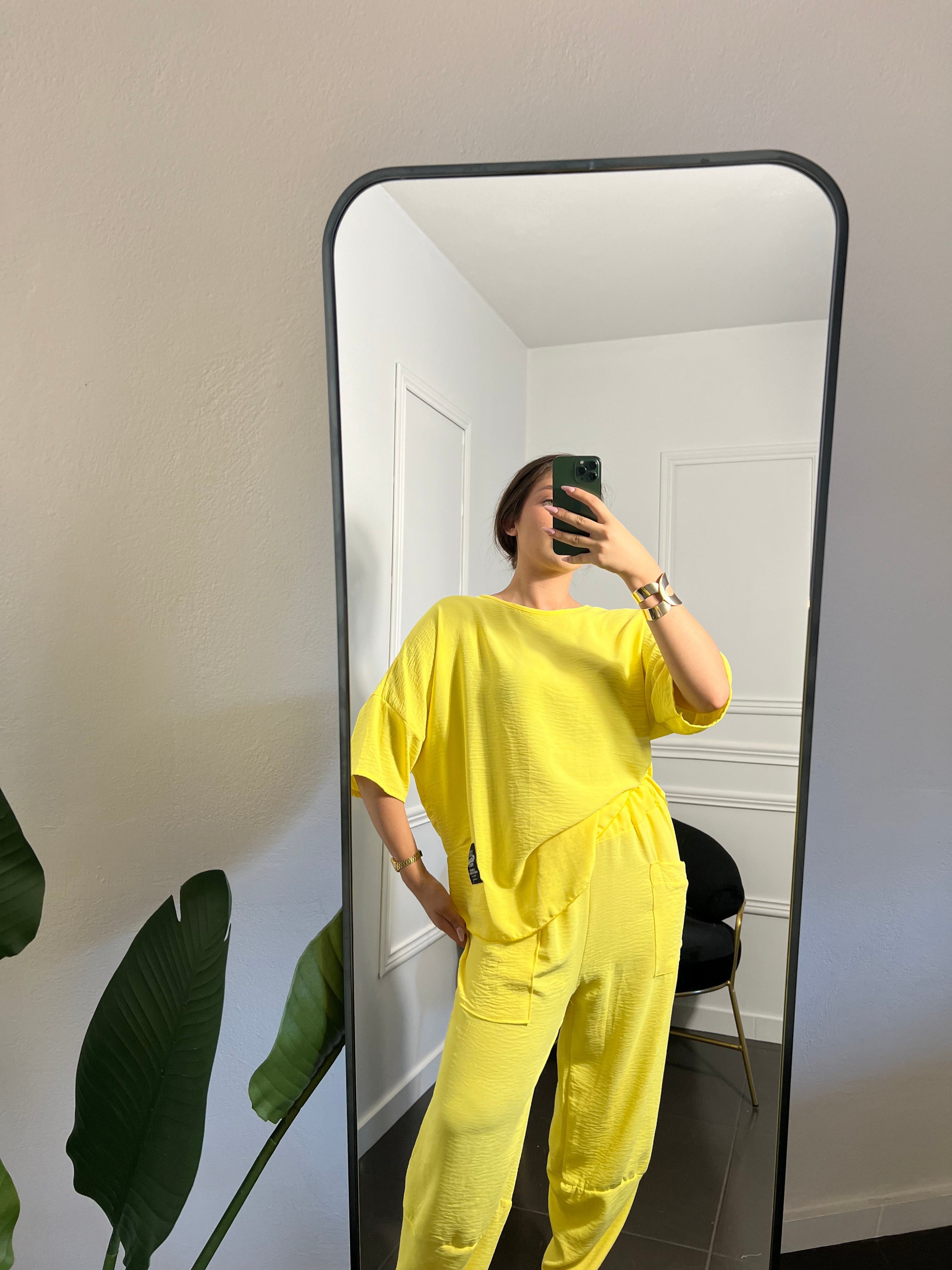 Σετ Μπλούζα Παντελόνα με τσέπες σε κλιτρινα χρώμα