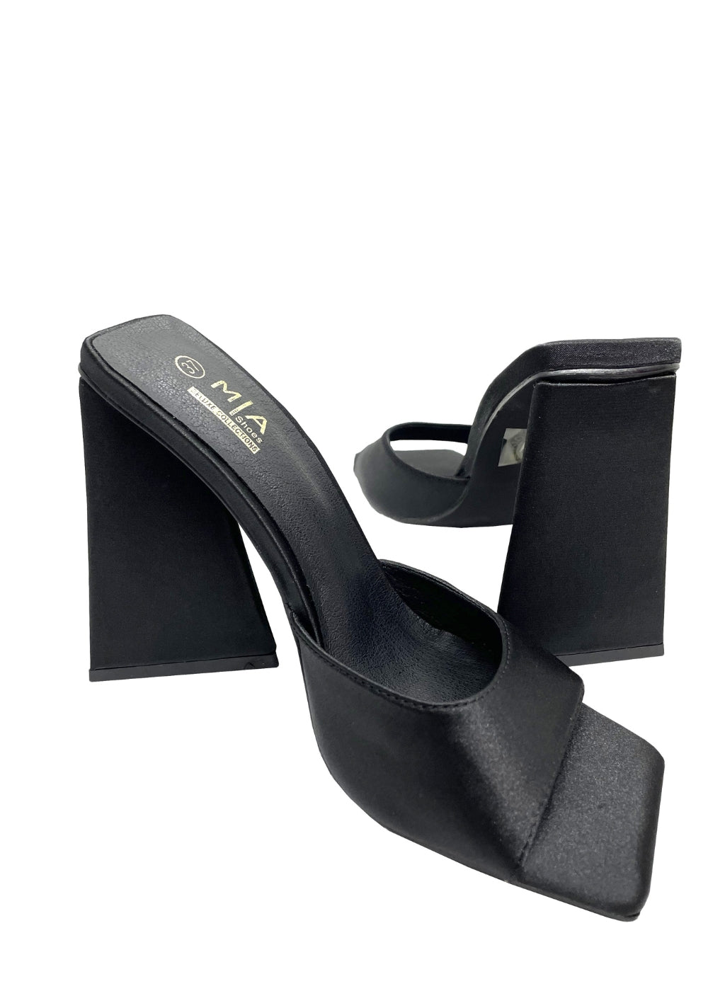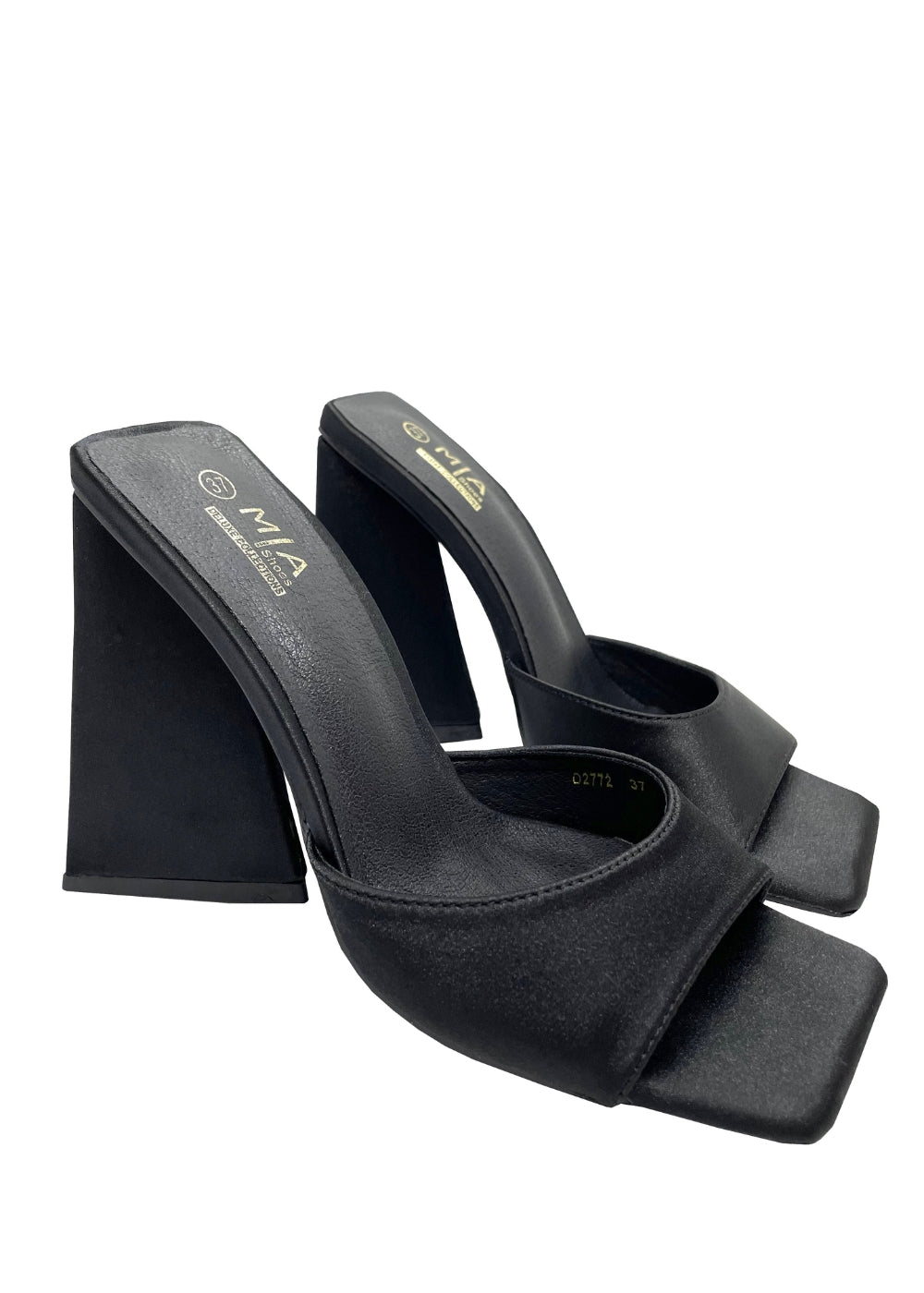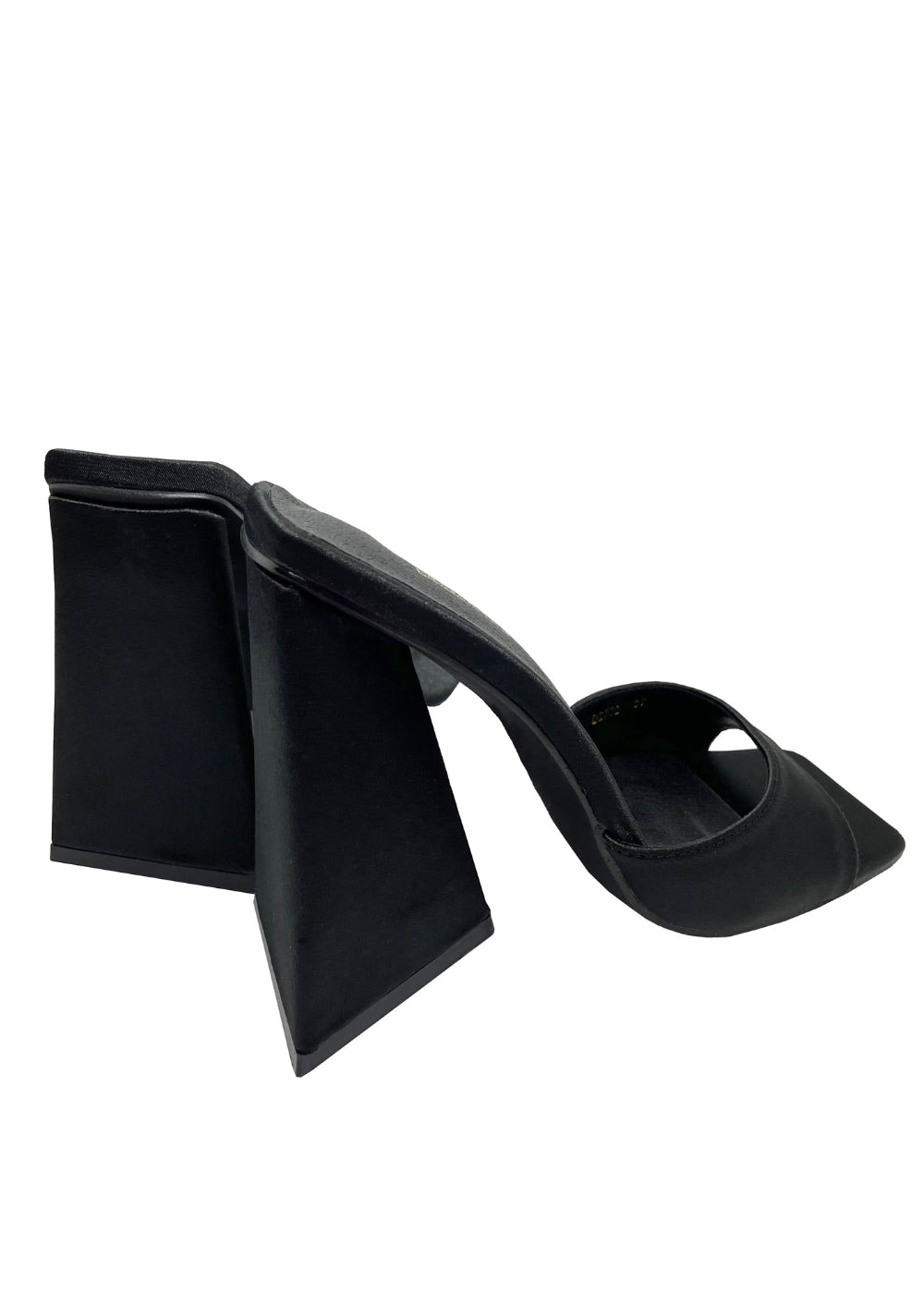 Σατέν Mules σε μπέζ χρώμα με ξεχωριστό τακούνι και αντιολισθητική σόλα για καλύτερη εφαρμογή.