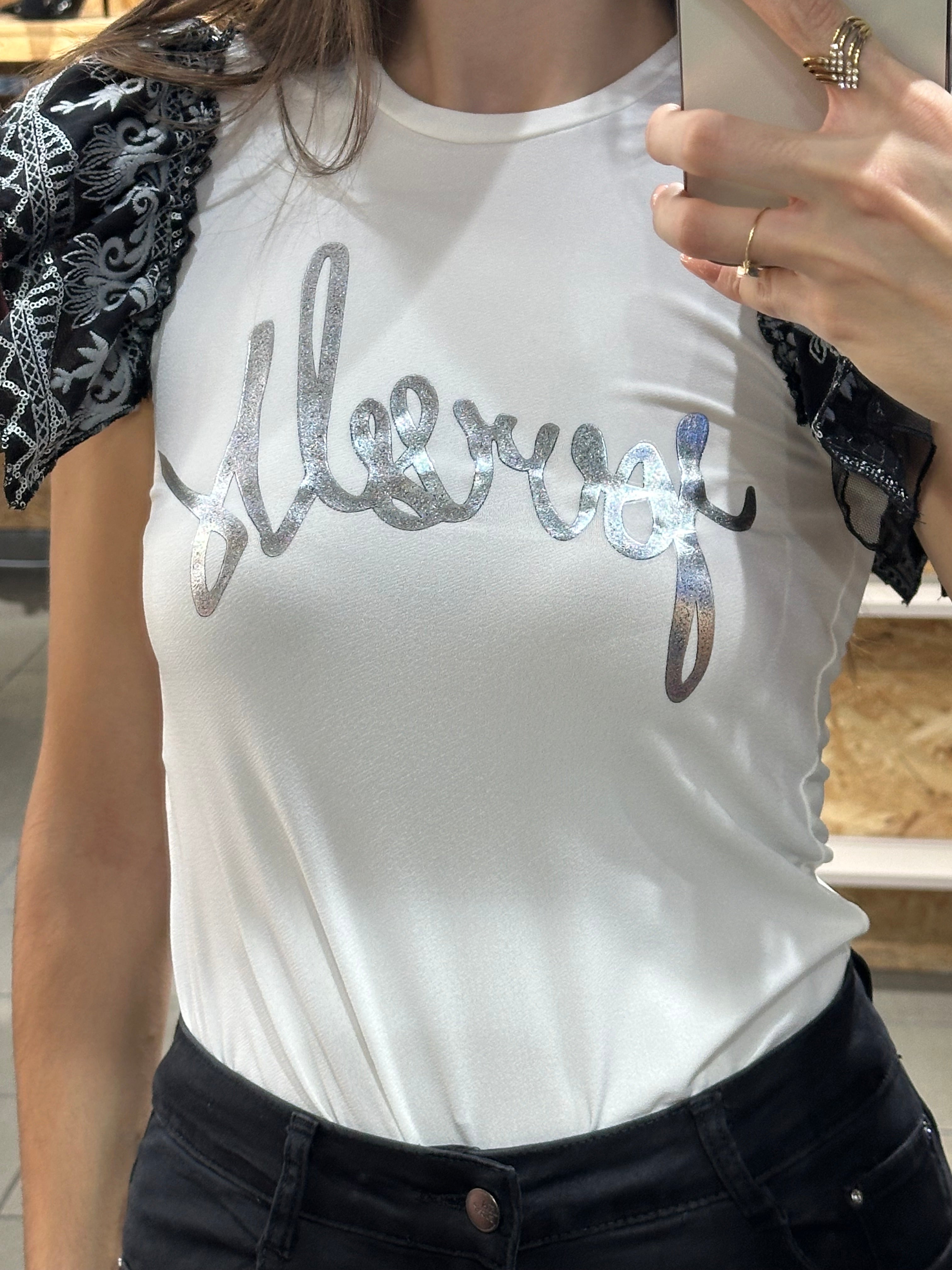 T-shirt με σχέδιο στο μπροστινό μέρος και τούλινα μανίκια